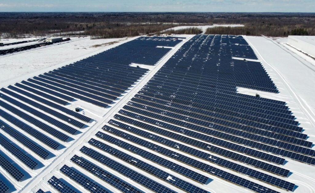 Solar panels on snow covered ground in Kingston, Ontario. We must stop using fossil fuels now, for the sake of the climate, but also to bring about greater global peace and stability. (Photo: Braeson Holland via Pexels)