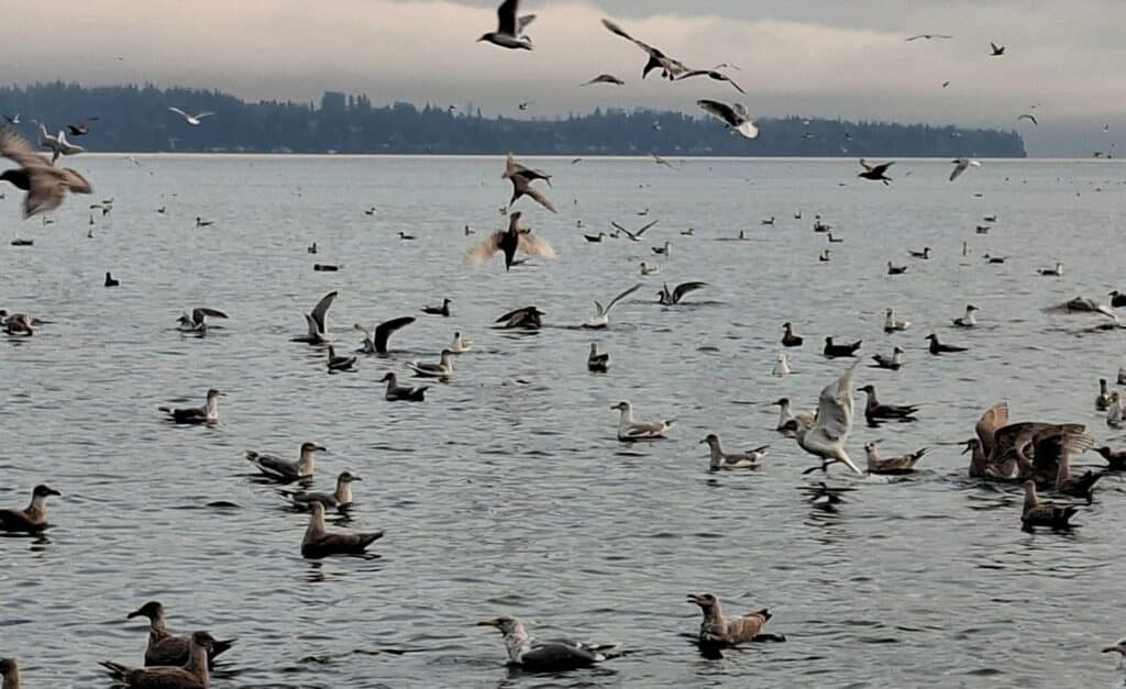 Anchovy swarm near Semiahmoo Bay attracting an explosion of biodiversity.
